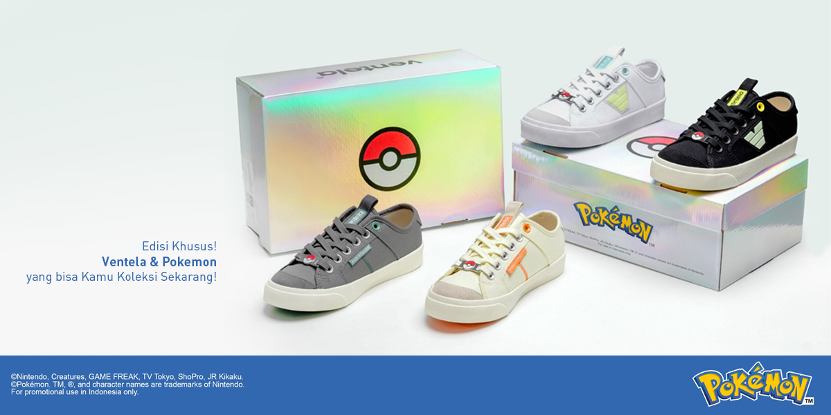 Sepatu kolaborasi ini bisa kamu dapatkan secara online melalui official store Ventela di e-commerce kesayangan kamu. Jadi, buat kamu para penggemar Pokémon jangan lupa untuk segera koleksi semua Ventela “Champion” Pokémon™ Special Edition!