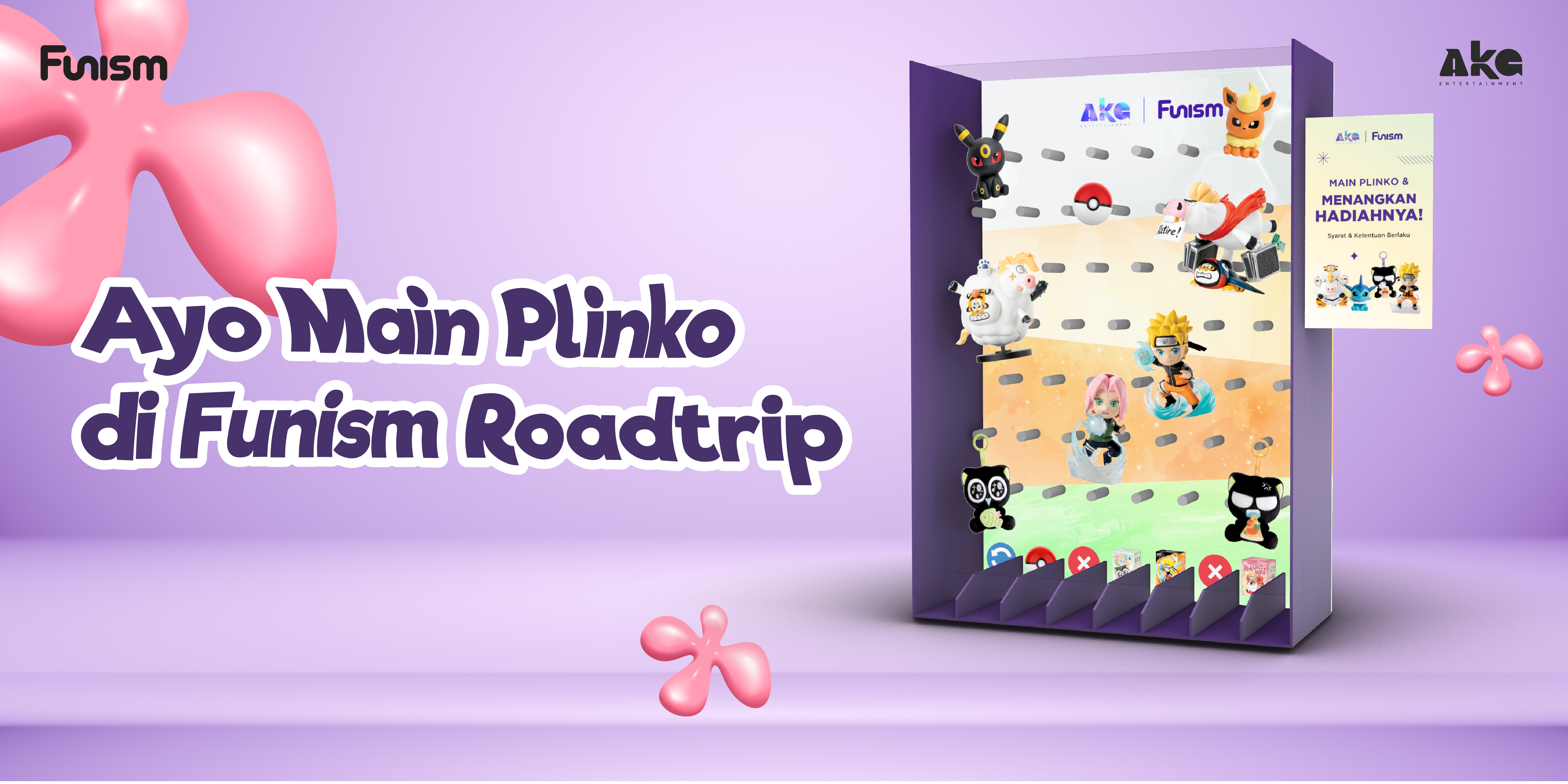 Ikuti keseruan Plinko Game Funism Roadtrip dari AKG Entertainment di berbagai toko offline Jakarta. Belanja produk Funism mulai Rp250.000 dan dapatkan kesempatan bermain Plinko untuk memenangkan hadiah menarik selama periode April–Mei 2026.