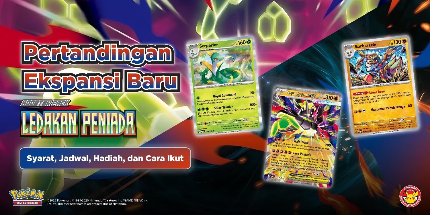 Pertandingan Ekspansi Baru “Ledakan Peniada” jadi program seru untuk mencoba set terbaru Pokémon Game Kartu Koleksi. Simak jadwal, lokasi, syarat ikut, format 3 ronde, hingga hadiah promo eksklusif yang bisa didapat di Toko GYM seluruh Indonesia.
